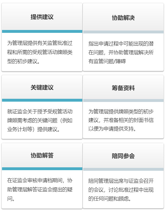 按照中國(guó)香港相關(guān)監(jiān)管規(guī)定,擬在中國(guó)香港開(kāi)展受規(guī)管活動(dòng)的公司需要向證券及期貨事務(wù)監(jiān)察委員會(huì)(證監(jiān)會(huì),是獲《證券及期貨條例》賦權(quán)監(jiān)察該類活動(dòng)的監(jiān)管機(jī)構(gòu)。)申請(qǐng)相關(guān)的受規(guī)管活動(dòng)牌照。