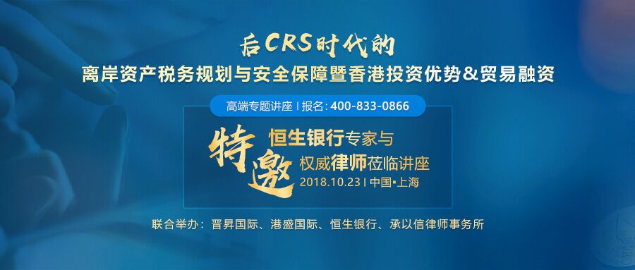 然自今年9月以來,CRS來勢兇猛,內(nèi)地與中國香港就實施稅務(wù)事宜自動交換財務(wù)帳戶數(shù)據(jù)(自動交換數(shù)據(jù))的安排已生效!海外投資的稅務(wù)問題及背后存在的隱患,不容小覷。后CRS時代與稅改新政下,境外離岸資產(chǎn)存在哪些法律問題與稅務(wù)風險?如何在合規(guī)前提下實現(xiàn)稅負優(yōu)化與資產(chǎn)保全?10月23日,我們將特邀知名法稅專家與您面對面交流,共同探討離岸資產(chǎn)稅務(wù)規(guī)劃與安全保障的新策略!講座名額有限,先到先得,詳見下文。