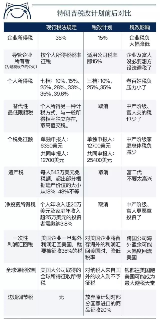 美東時(shí)間4月26日,川普拋出競(jìng)選時(shí)承諾的減稅計(jì)劃,美國聯(lián)邦政府公布了新稅改方案,力度史無前例。此方案一出,全球沸騰,如果這一方案能夠在國會(huì)全部獲通過,必將對(duì)美國在全球的競(jìng)爭(zhēng)力產(chǎn)生重要影響?,F(xiàn)在,我們就一起來看一下,美國稅改到底意味著什么?對(duì)你有沒有什么影響?