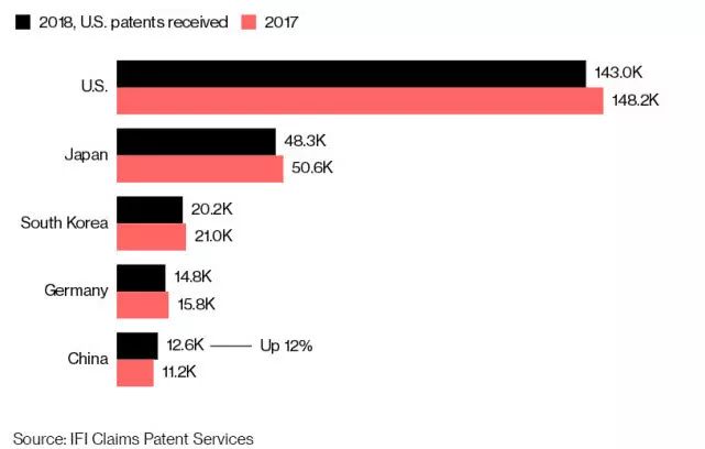 從全球國家總體來看,美國專利局商標(biāo)局去年授予的專利數(shù)量下降了3.5%,除中國外,其他主要國家獲得的專利數(shù)量都低于上年。在2018美國專利排行榜中,中國專利數(shù)量增一成,排全球第五。