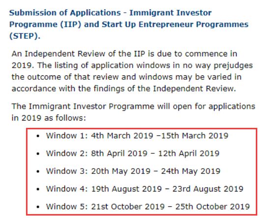 愛爾蘭投資移居計劃(The Immigrant Investor Programme, IIP)自2012年開放,主要面向想要投資移居愛爾蘭的非歐盟國家公民。投資移居投資移居的最低投資額為100萬歐元,最短投資期為3年,家庭凈資產(chǎn)需達到最低200萬歐元 。愛爾蘭移居局也公布了2019年的申請窗口,具體如下: