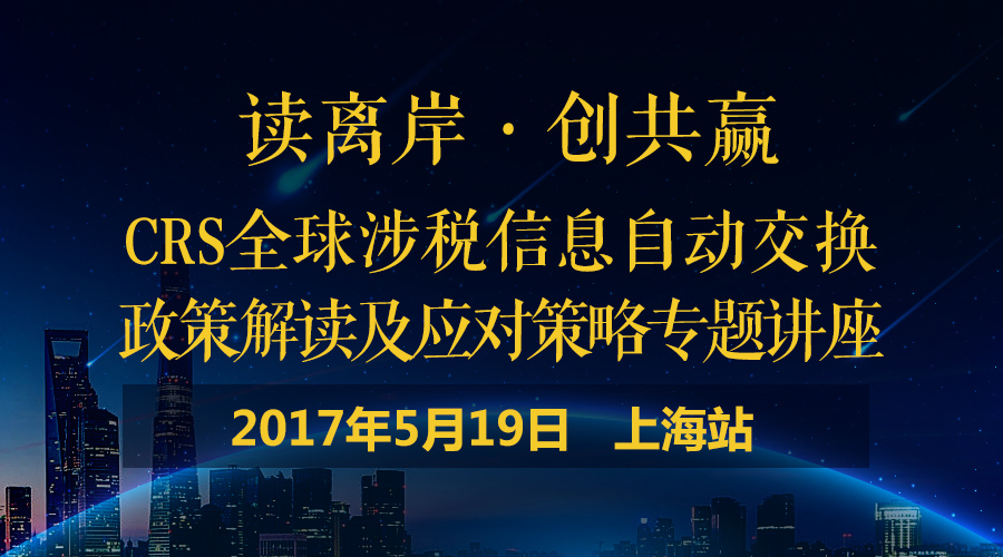 但正確應(yīng)對(duì)CRS的前提是,你必須對(duì)CRS有全面、深入的了解。鑒于CRS與我司客戶的利益息息相關(guān),為了讓廣大客戶更深刻地了解CRS,更好地應(yīng)對(duì)CRS可能帶給大家的影響,我司特別安排了一系列CRS專題講座。5月19日,我司將舉辦第五場(chǎng)(上海站)CRS講座,并邀請(qǐng)了多位老師為大家全方位解讀CRS,詳細(xì)對(duì)CRS的熱點(diǎn)政策、實(shí)施步驟及各類風(fēng)險(xiǎn)作深度的剖析解讀,并提出合理的解決方案,以幫助大家更好地應(yīng)對(duì)CRS。有興趣的朋友趕緊報(bào)名參加我們的講座,現(xiàn)場(chǎng)名額有限,先到先得哦~