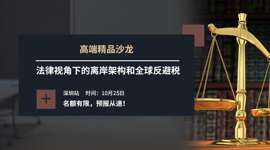 為了讓大家能夠從的法律視角了解全球反避稅趨勢(shì)、離岸架構(gòu)搭建新策略、境外稅務(wù)合理籌劃等內(nèi)容,我司整合實(shí)力雄厚、知名的律所資源,10月25日,將聯(lián)袂國(guó)際財(cái)富規(guī)劃聯(lián)盟(IWP)成員、美國(guó)瑞銀盡調(diào)推薦律所-Inhetrust重磅推出"法律視角下的離岸架構(gòu)和全球反避稅"精品沙龍。