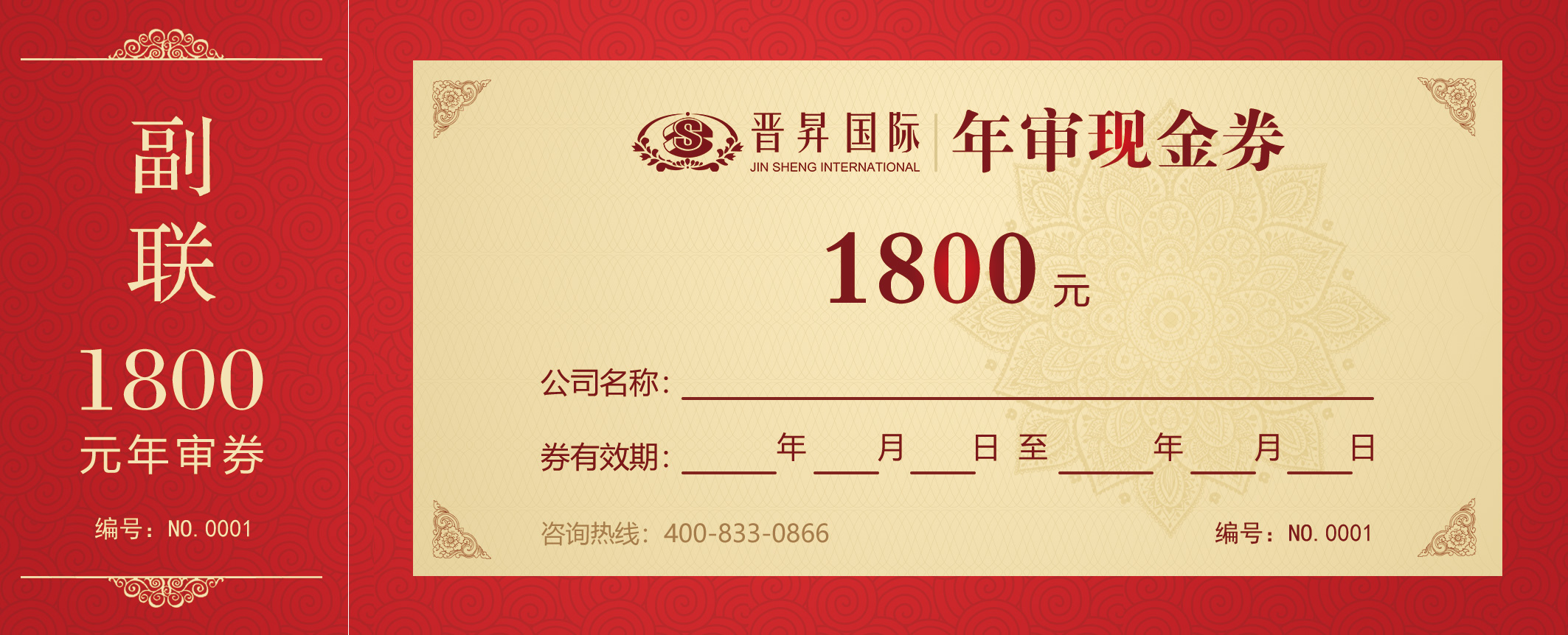 5、請(qǐng)妥善保管本現(xiàn)金券,屆時(shí)憑券抵扣1800元年審費(fèi)用,遺失不補(bǔ);