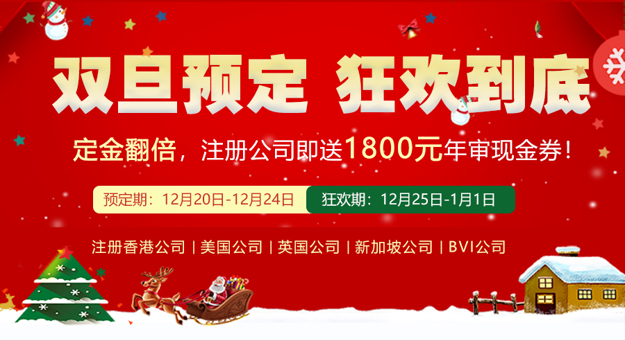 12月25日-1月1日,注冊(cè)中國(guó)香港、海外公司即送1800元年審現(xiàn)金券。