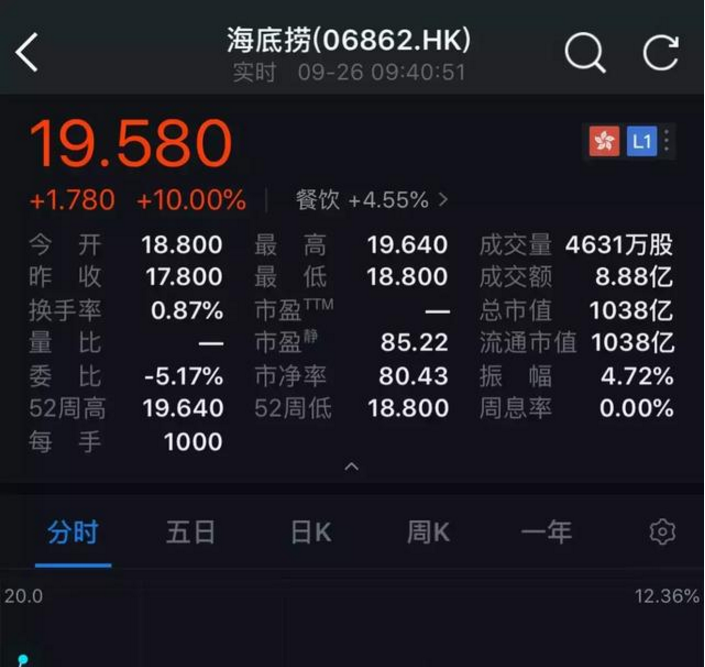 中國餐飲集團(tuán)海底撈火鍋(Haidilao Hotpot)周三在中國香港掛牌買賣,迎來火爆開局。海底撈的發(fā)行價位于定價區(qū)間高端,發(fā)行價為每股17.80港元,共籌得9.63億美元。昨天早盤,海底撈股票一度上漲10.3%,后有回落。
