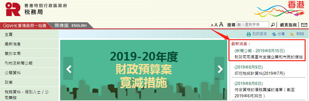 如有關(guān)法例獲立法會通過,個別人士可獲寬減2018/19課稅年度百分之七十五的利得稅、薪俸稅及個人入息課稅最后評稅稅款,每宗個案以20,000元為上限。在2019年8月15日,財政司司長建議提升寬減2018/19課稅年度的利得稅、薪俸稅及個人入息課稅至百分之一百,每宗個案上限維持20,000元。